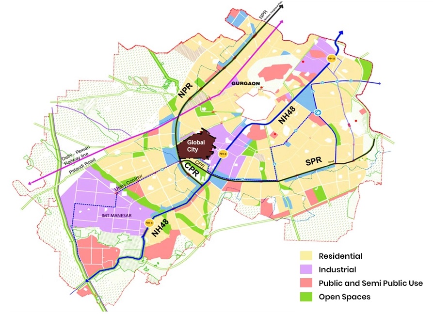 Global City is strategically located on over 1000 acres of land and is spread across Sectors 36, 36B, 37, and 37B of Gurugram. The city has direct access to the 8-lane Dwarka Expressway (Northern Peripheral Road) and Pataudi Road. NH 48 (Delhi-Jaipur Highway) and Central Peripheral Road are also close to the project.